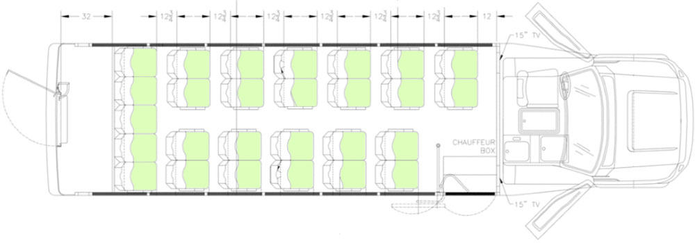 27-Passenger Capacity with Full Rear Luggage Wall
